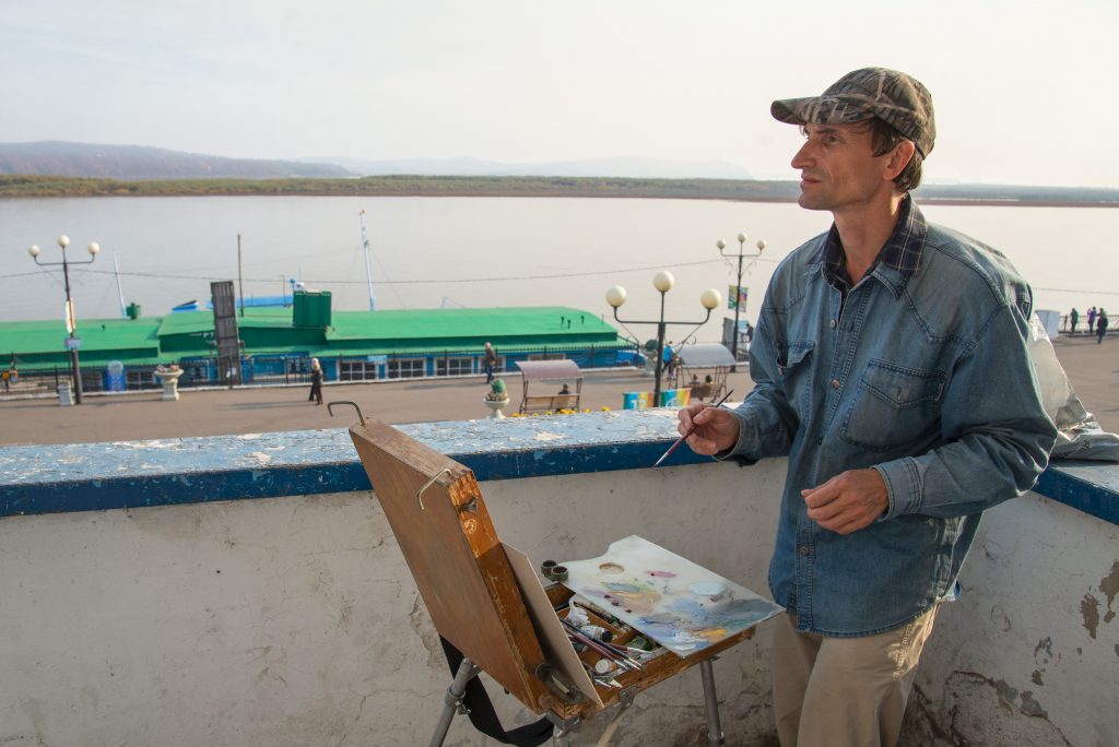 — Да, у меня всегда есть краски и загрунтованные картонки. Только за это путешествие я написал 24 работы – два портрета и пейзажи. Пока я в Комсомольске, они находятся на выставке в библиотеке имени Аркадия Гайдара в Хабаровске.