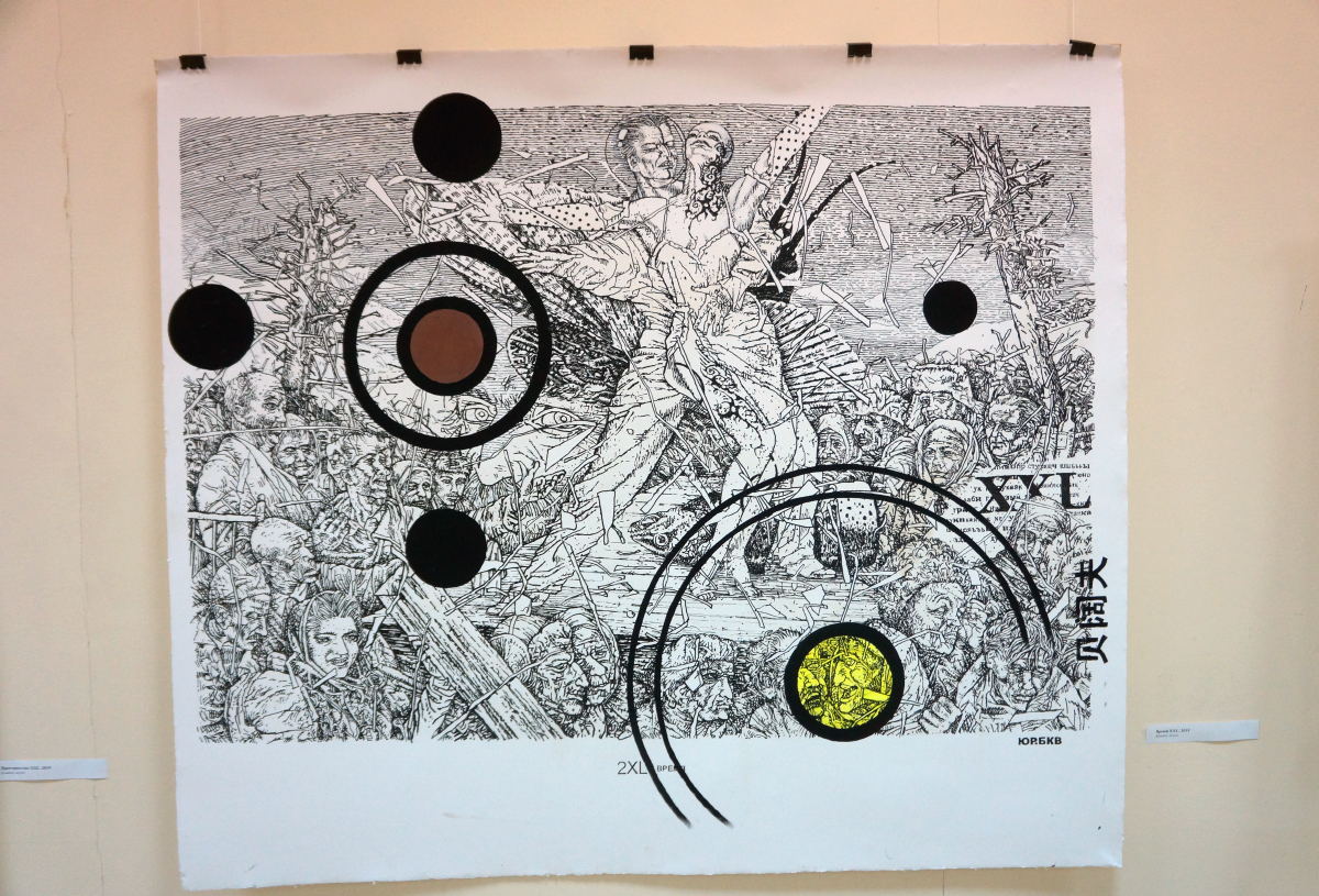 Подобных образов и символов в экспозиции можно найти ещё больше, если детально рассматривать каждую работу. Выставка «Размер ХХL, или Чёрные дыры и белые карлики» будет работать в течение месяца, до 16 июня.