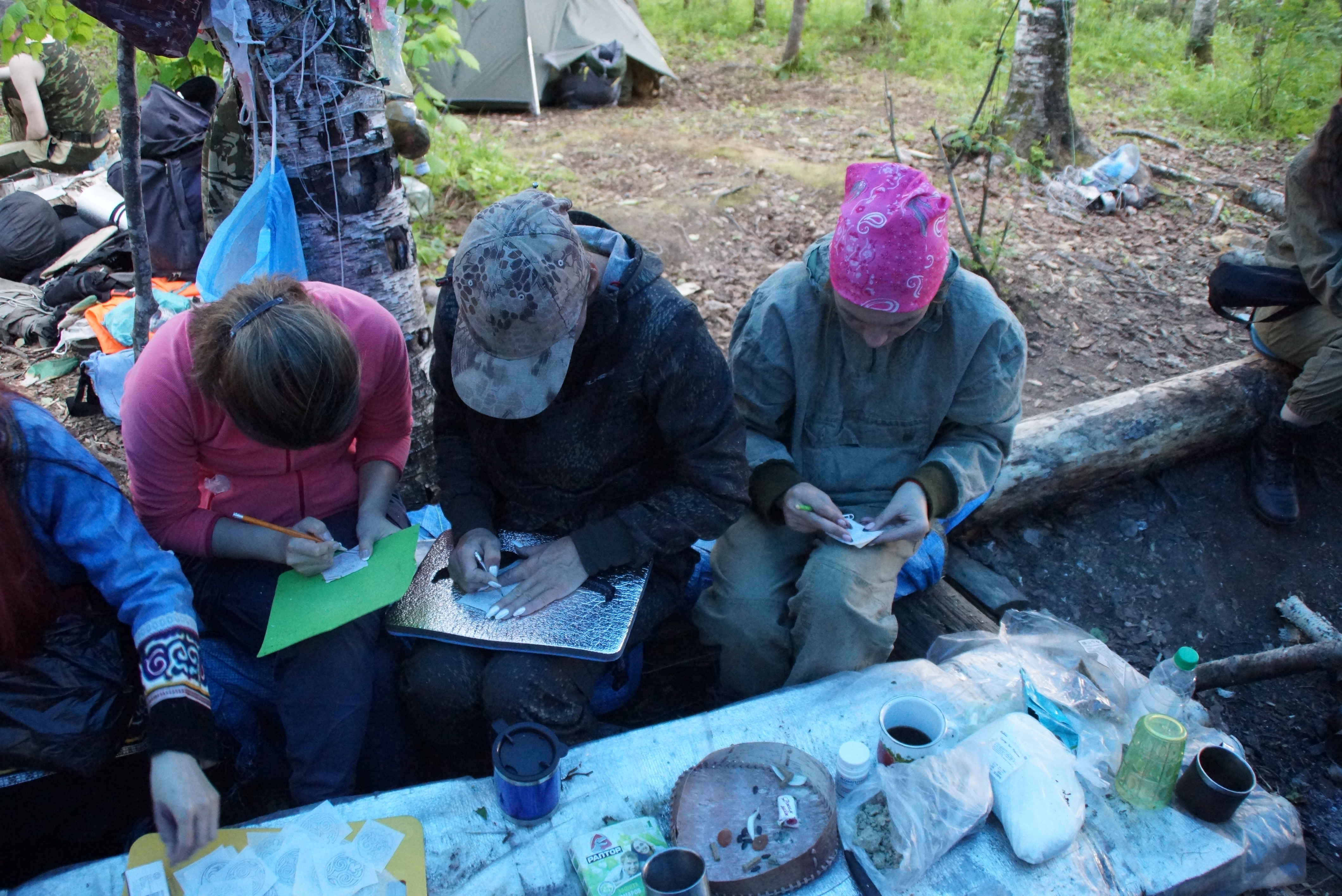 Под серым пасмурным небом Виктория Пассар провела обряд подношения богу огня — Поде. В это время Анастасия Маслюкова исполняла «танец шамана» под варган Таисии Тришиной. Затем заиграли флейта, африканский барабан джемба и «посох дождя». И дождя как не бывало! Весь дальнейший поход группе сопутствовали солнце и отличная погода.