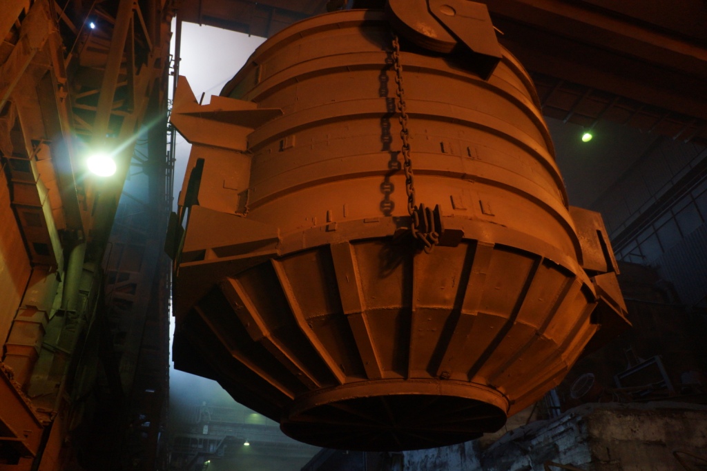 — Жидкий металл стекает в сталеразливочный ковш, — объяснил Владимир Сухоплюев. — Он передаётся на агрегат по комплексной подготовке лома. Здесь создаётся заданный химический состав стали.
