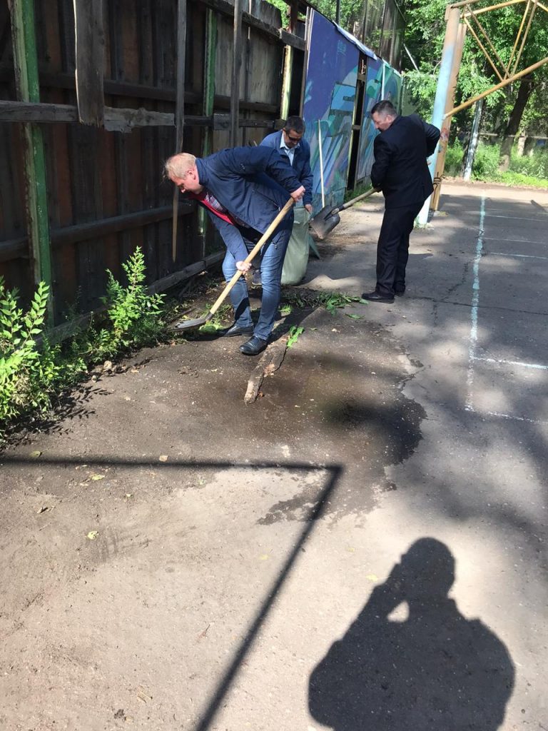 В итоге глава города и ряд сотрудников мэрии, а также спасательный отряд МЧС внесли огромный вклад в преображение спортплощадки. За один день не управились – закончили начатое в субботу. В течение двух дней эта дружная компания убрала мусор, демонтировала старые лавочки и установила новые. Причём материал для них глава города купил за свой счёт.