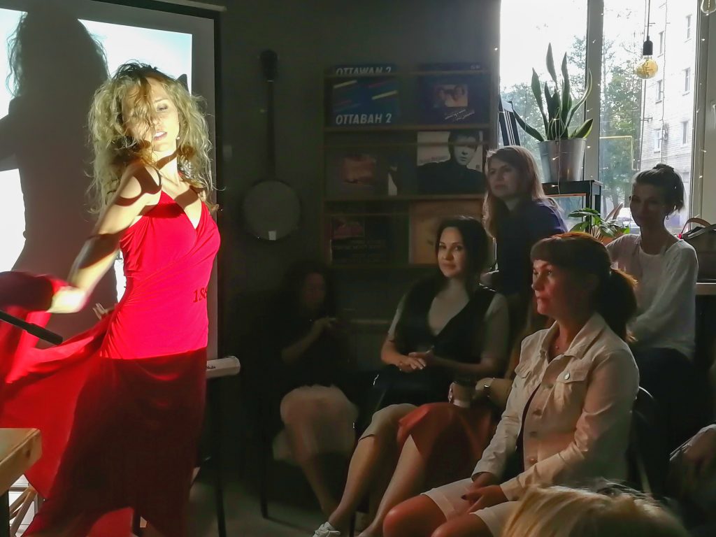 Абстрагирование началось с чувственного танца актрисы театра КнАМ Виктории Грибановой, которая на пару минут увела зрителей от действительности и перенесла в знойную Испанию. После танца слушатели с должным настроем впитывали рассказ Татьяны Чановой о жизни художника, наполненной самым разным, но главное – любовью: