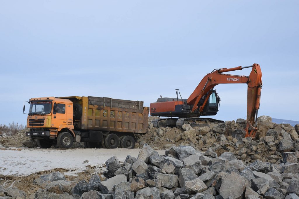 Строительство защитных гидротехнических сооружений в микрорайоне Парус осмотрел 12 февраля врио губернатора Михаил Дегтярёв. Сегодня на Парусе ведутся активные работы по отсыпке дамбы, причём настолько активные, что грохот ссыпаемого из самосвалов грунта мешал говорить.