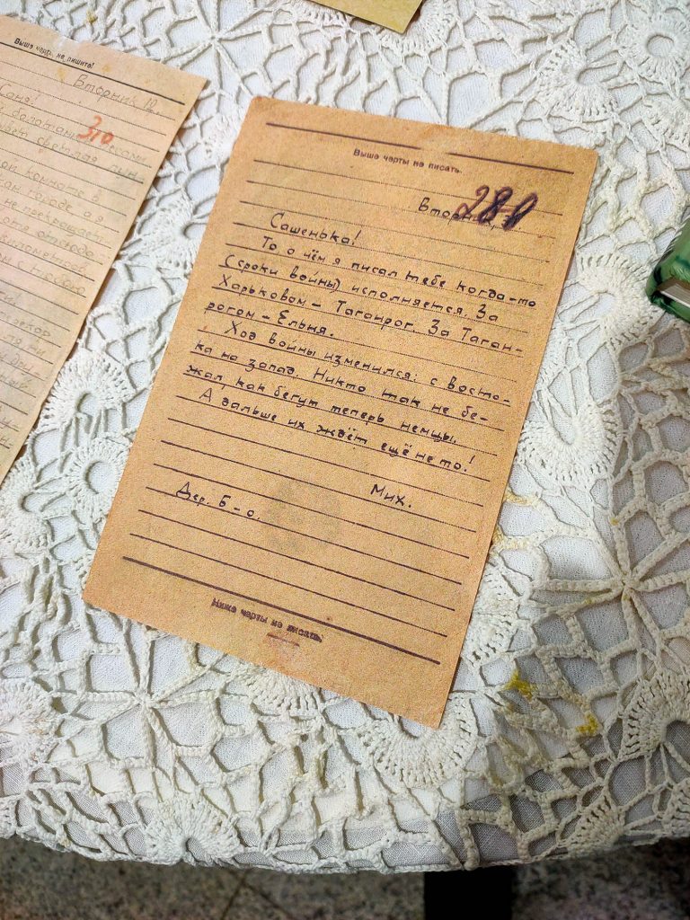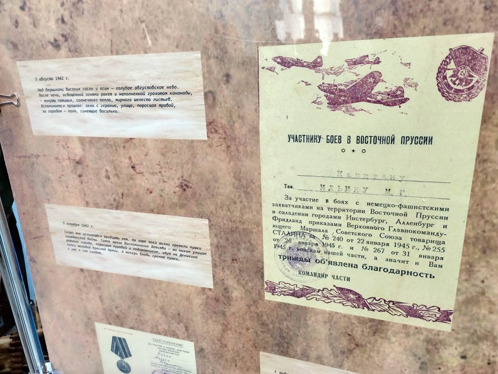 — В фондах нашего музея я нашла коллекцию фронтовых записей Михаила Ильина, в которых он описывал военные события, — рассказывает сотрудница краеведческого музея Ольга Тарасова, автор экспозиции. – Кроме того, там были и письма Михаила, которые он писал своей девушке Александре Храмшиной. Всего таких писем он написал 288. Когда я познакомилась со всей этой корреспонденцией, мне захотелось сделать эту коллекцию открытой для всех посетителей музея. Так родилась идея выставочного проекта, средства на организацию которого удалось получить с помощью гранта.