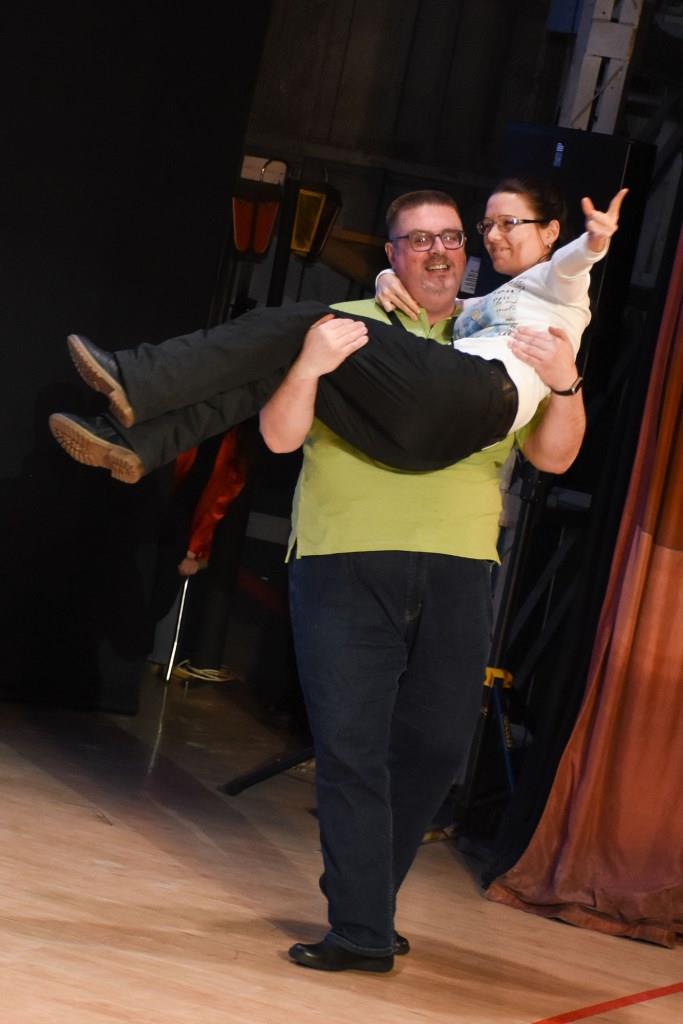 Впрочем, это было ещё не всё. Неожиданностью для конкурсантов стала импровизация от ведущего Руслана Гаязова. Он предложил участникам выбрать себе даму сердца из зала и вывести на сцену. Кто-то выбрал супругу, кто-то подругу, а кто-то маму или бабушку. Но главным подвохом было то, что теперь с дамой нужно было провальсировать по сцене под музыку. Все мужчины с честью выдержали испытание танцем. Справедливости рад стоит заметить, что никто не показал себя профессиональным танцором, но все оказались настоящими мужчинами. Даже практически гусарами. Наверное, их па были далеко не идеальными, зато никто не спасовал. А Максим Несмачных одновременно облегчил и усложнил своё танцевальное упражнение, тем, что взял партнёршу на руки. Да, теперь не нужно было думать, как не наступить друг другу на носки, зато пришлось заботиться о том, чтобы не упасть вместе с дамой сердца. Это ж представляете, какой был бы конфуз!