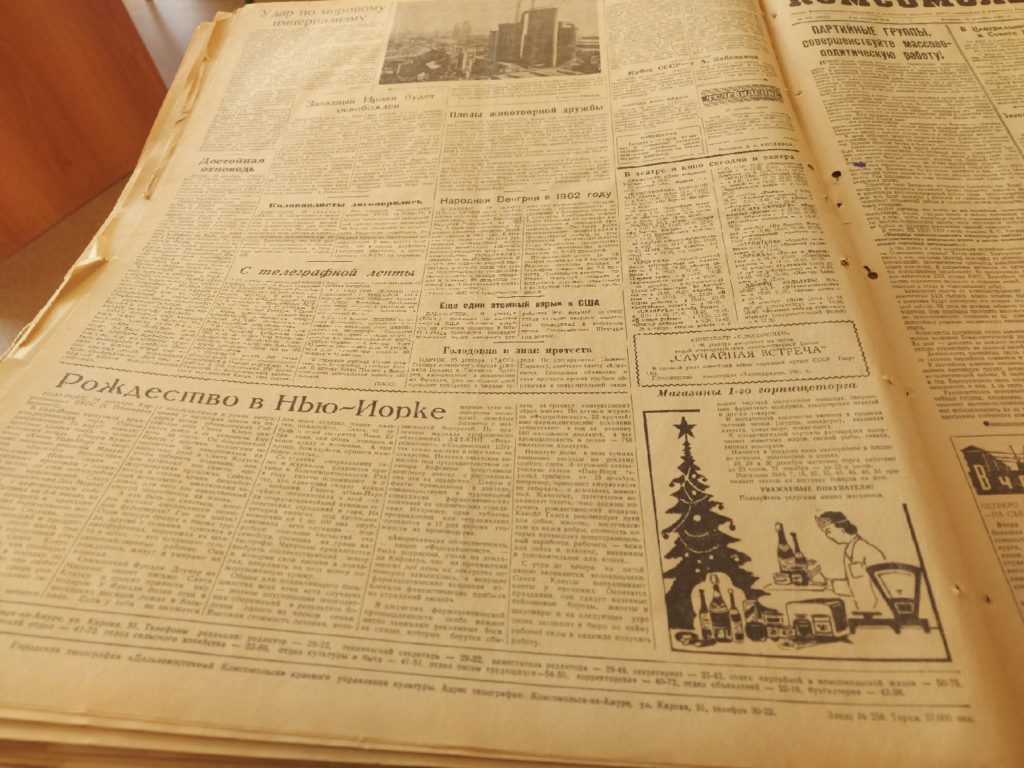 Газете «Дальневосточный Комсомольск» в июле следующего года исполнится 90 лет. Ежегодно она освещала летопись событий города-ровесника. С газетой комсомольчане встречали и Новый год. В рамках данного материала мы отправимся в путешествие в прошлое и посмотрим, о чём писал «Дальневосточный Комсомольск» в новогодних номерах в разные десятилетия.