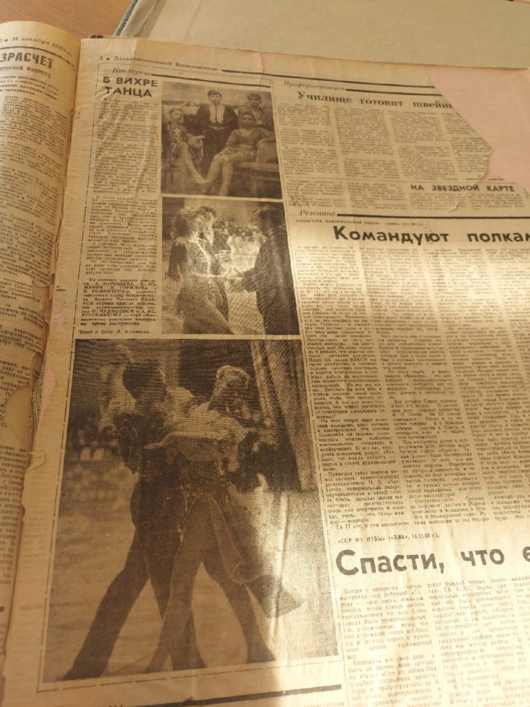 Газеты за 80-е годы продолжают описывать развитие нашего города и страны. В декабрьском номере 1986 года была размещена заметка о строителях, которые трудились с подъёмом. За 12 месяцев они ввели в эксплуатацию почти 129 тысяч квадратных метров жилья при плане в 125. Практически все предприятия либо выполняли норму, либо её перевыполняли. Во всяком случае, об этом сообщала пресса. Писали и о культуре и спорте, правда, немного. В «ДВК» за 1988 год можно, к примеру, увидеть репортаж с конкурса по спортивным бальным танцам «Амурская мозаика». В этом году из-за коронавирусных ограничений впервые он не был проведён.