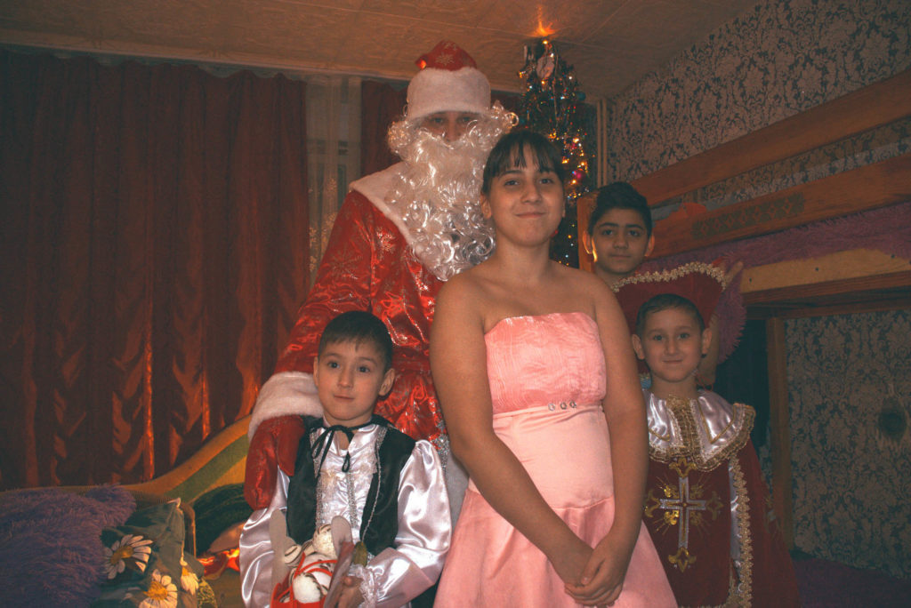 Идём на следующий адрес. Снова семья с пятью детьми. Ба! Да тут к приходу гостей подготовились основательно: мальчики в новогодних костюмах, девочка в красивом платье с открытыми плечами.