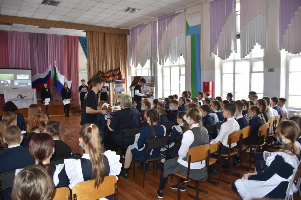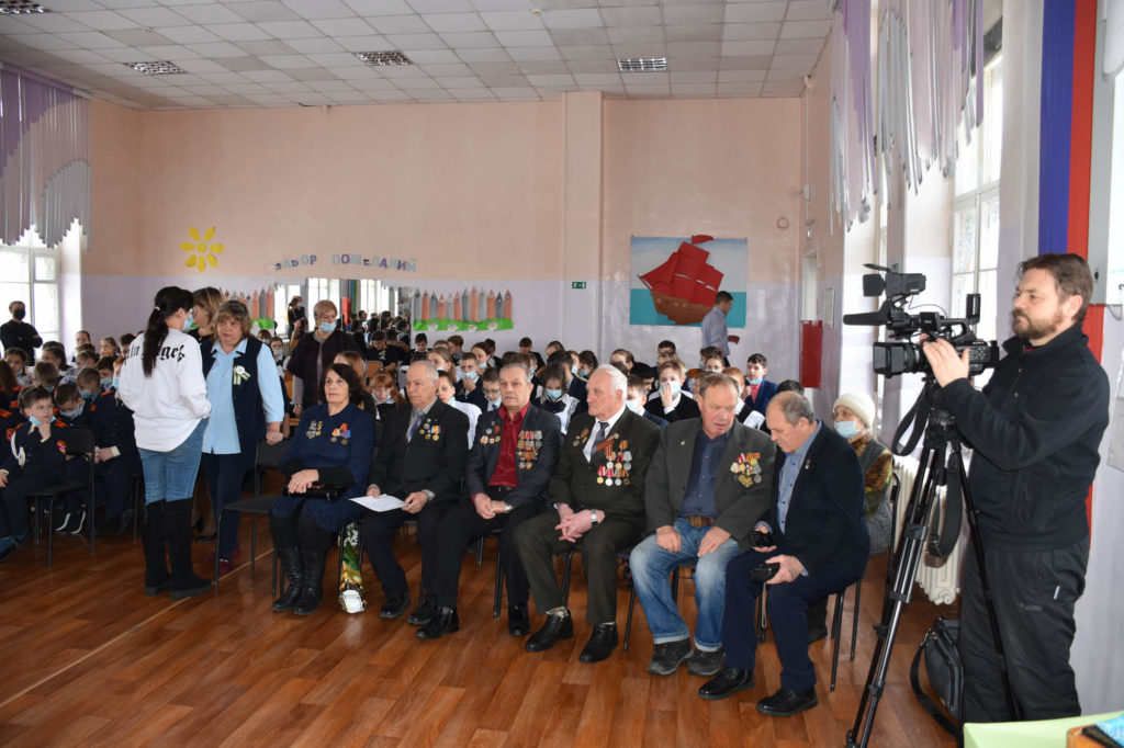 Отрепетировали, собрали детей 8 – 13 лет в актовый зал после уроков, пригласили совет ветеранов Ленинского округа, участников боевых действий на острове Даманском, а сам зал обставили экспонатами из своего музея.