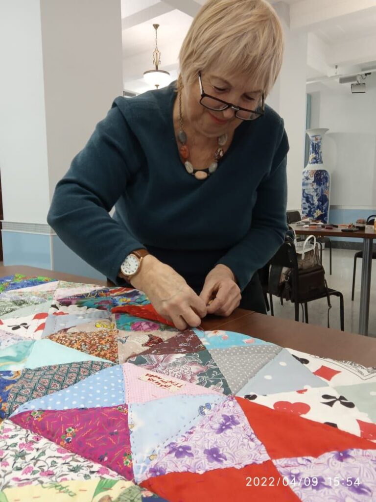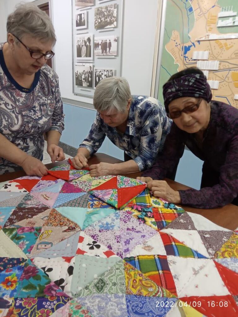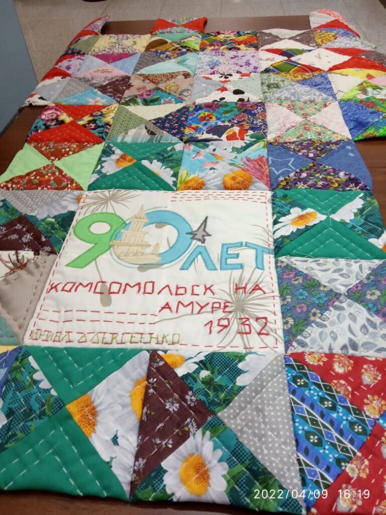 Суть её в том, что любой житель города может прийти в музей и сшить свой маленький блок из четырёх лоскутов, чтобы в итоге получилось огромное лоскутное одеяло в подарок Комсомольску на 90-летие.
