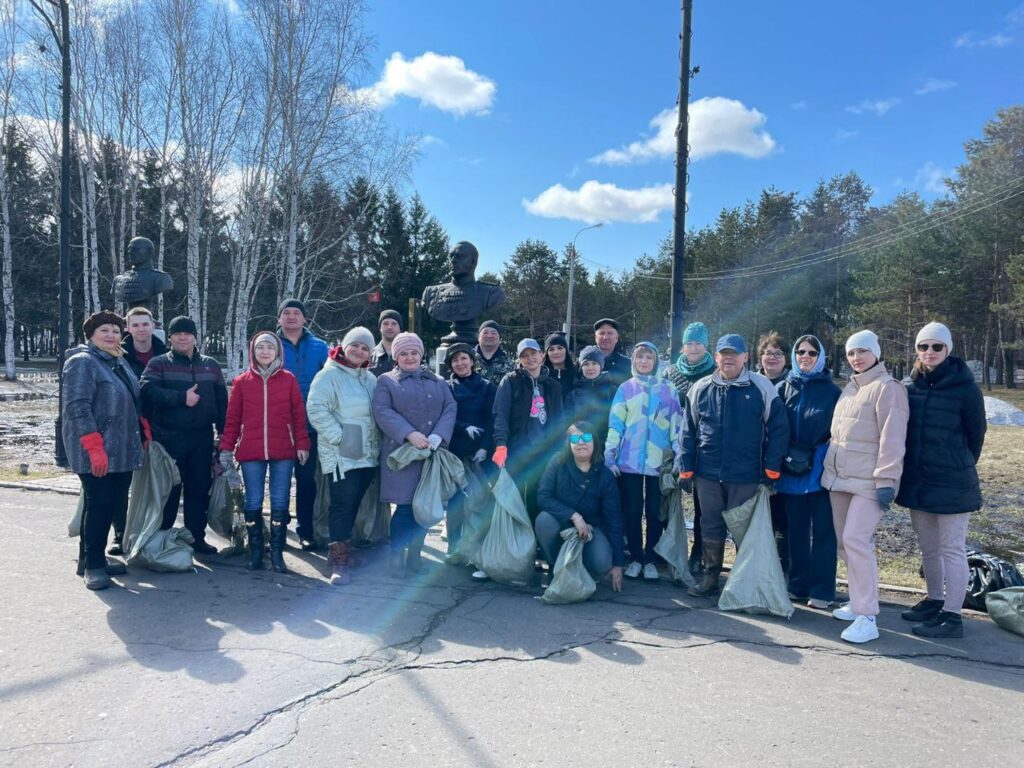 В разнарядке, которую составила мэрия на субботник, значились очень многие. В едином добровольно-принудительном порыве на уборку любимого города звали все муниципальные предприятия и учреждения (в том числе драмтеатр, оба музея, ДК «Алмаз» и библиотеки), вузы и ССУЗы, больницы, Автотранспортное предприятие, «Самбери», «Амба», «Рума», «Дилан», Сбербанк, агрокомплекс «Восток», газета «ДВК», Комсомольское лесничество, служба кадастра и картографии. Кто-то отработал ещё в четверг, как драмтеатр. Другие вышли в субботу. Например, как муниципальная баня на ул. Кирова. Там коллектив вывалил на улицу с шутками-прибаутками, нагрёб изрядное количество мешков с замусоренной листвой, распинал-разворошил почерневшие сугробы, сложил аккуратными кучами опавшие ветки.