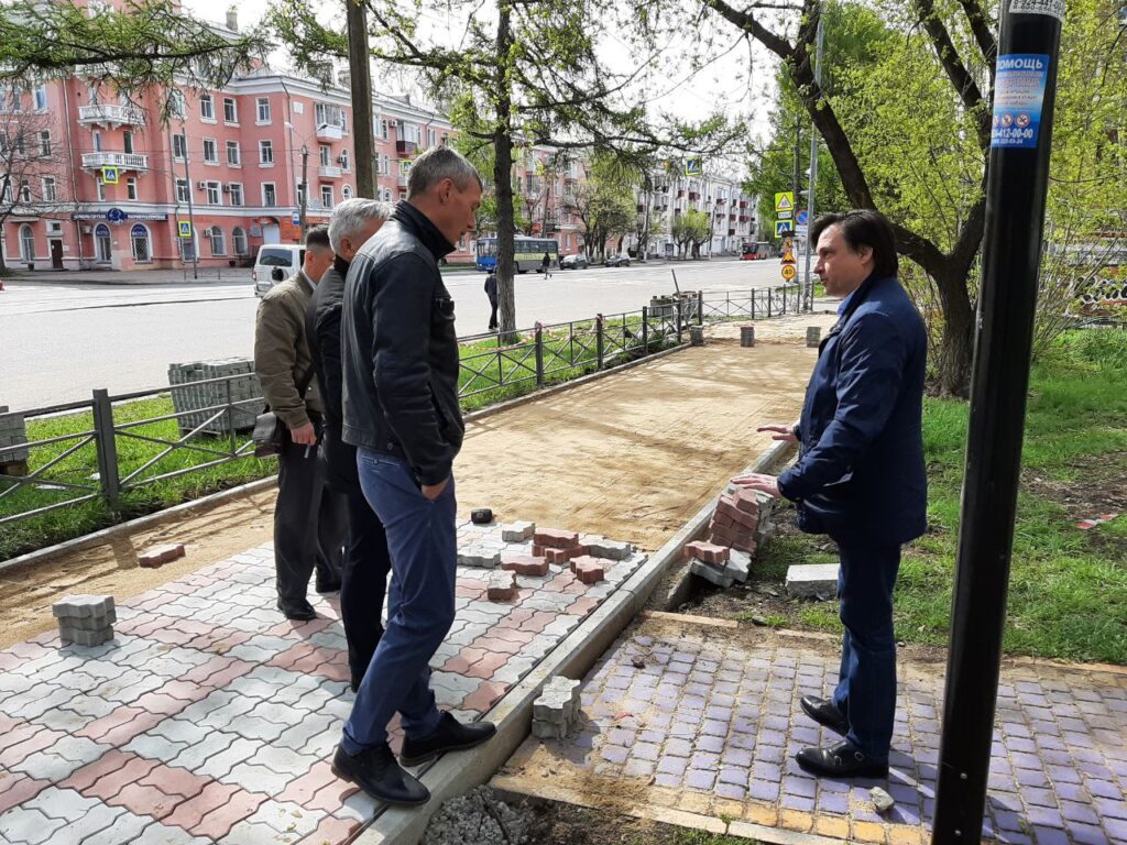 – На пр. Мира (от дома № 22 до ул. Дзержинского) идёт установка новых бордюров, – рассказал градоначальник, – в районе «фиолетового» сквера на тротуар укладывается брусчатка. Подрядчик – ООО «РУСТ» – работает по графику, по контракту работы должны быть завершены к 1 сентября, но руководство компании заверило меня, что ремонт будет завершён раньше.