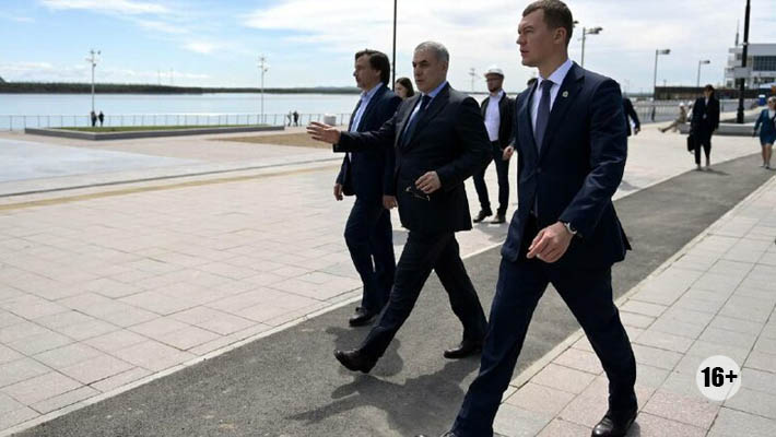 — Первый этап обновлённой набережной Комсомольска-на-Амуре мы введём уже в августе. Сейчас специалисты подрядчика заняты внутренней отделкой помещений, облицовкой железобетонных конструкций, установкой акустической системы будущего пешеходного фонтана. Кстати участок от речного вокзала до фонтана мы выделили в 3-й этап, который постараемся сдать одновременно с первым. Зачем горожанам ждать ещё год, чтобы испытать на себе все возможности комплекса и оценить его красоту, — заявил Михаил Дегтярёв.