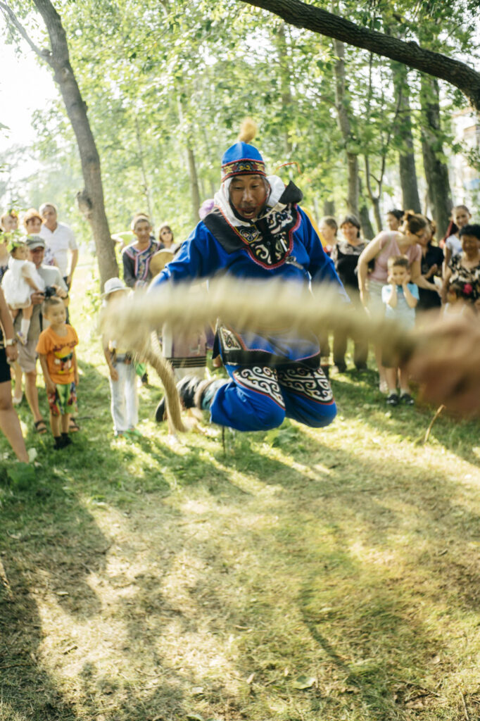 – При метании аркана важно хорошо прицелиться, чтобы попасть им на шест с первого раза, – рассказал Игорь Тумали, спортсмен из посёлка Омми Амурского района. – Бывает, что аркан не долетает или не раскрывается и попытка не засчитывается. Это очень сложный вид спорта. У каждого спортсмена всего по три попытки.