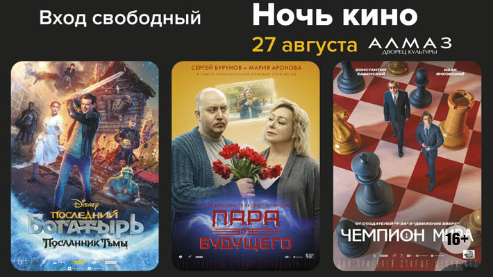 27 августа Дворец культуры «Алмаз» приглашает комсомольчан на ежегодную Всероссийскую акцию «Ночь кино».