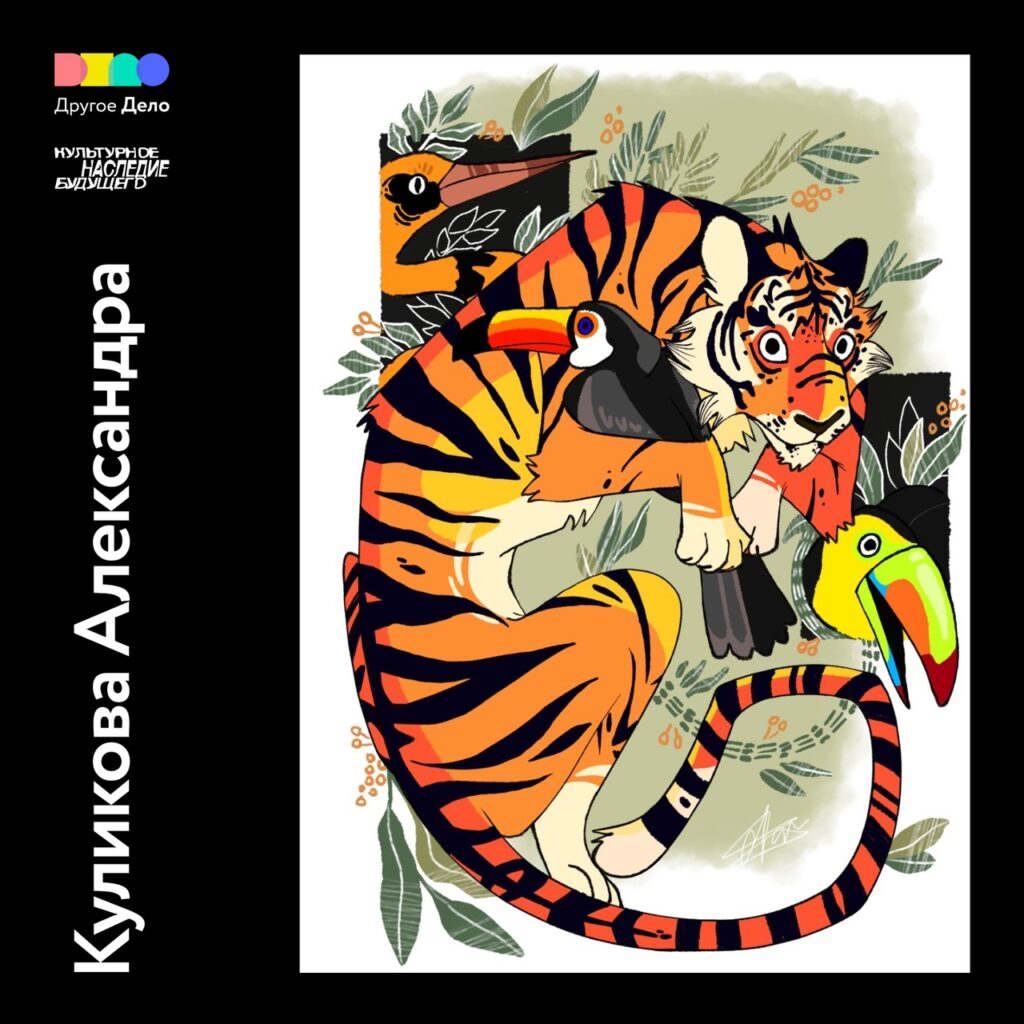 – Как таковых сложностей у меня не возникло, потому что рисование – это одновременно моё любимое дело и работа. Задумка и реализация идеи для меня – обычный процесс, – рассказала Александра Куликова, одна из трёх победителей. – Конкурсная работа должна была показать в себе яркие краски и цвета. Мне не хотелось, как всем, рисовать героев СССР и творцов. Было желание показать что-то иное и не столь популярное. Яркий рыжий тигр и разноцветные птицы стали отличным решением не только по моему собственному, но и по мнению конкурса. Очень рада за это.