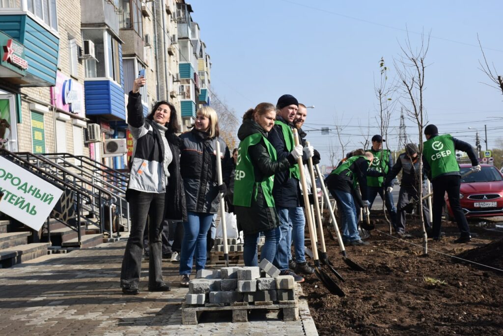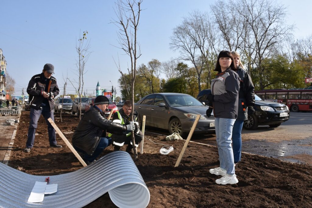 В акции по озеленению проспекта Ленина участвовали работники «Амурстали», сотрудники Сбербанка, представители компании-подрядчика, а также администрации города во главе с Александром Жорником. «Горводоканал» прислал водовозку для полива.