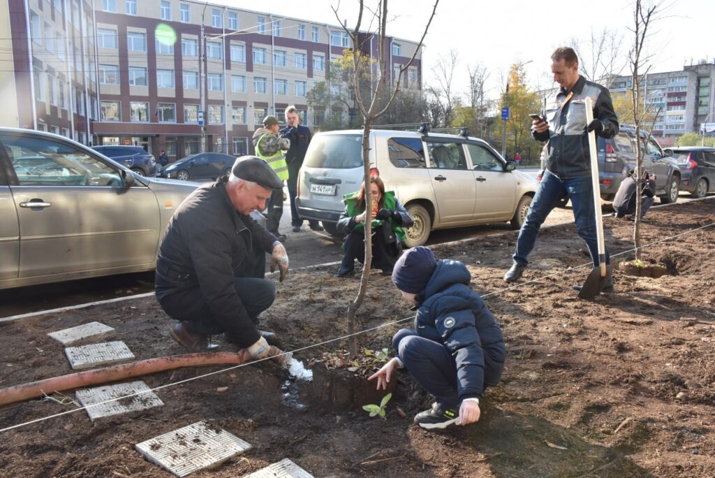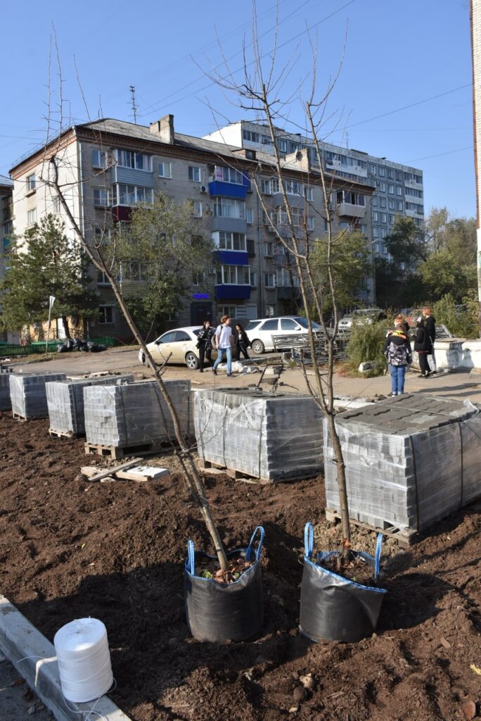 В пятницу 14 октября началась высадка молодых деревьев на чётной стороне проспекта Ленина от Дома правосудия до площади Металлургов. Крепкие 12-летние саженцы яблонь с уже сформированной и даже аккуратно подрезанной кроной закупили Сбербанк и завод «Амурсталь» на собственные средства. Это 90 яблонь, выращенных в питомнике «Спецавтохозяйства». Количество саженцев символично и приурочено к 90-летию Комсомольска-на-Амуре, хотя есть в этом и практический расчёт.