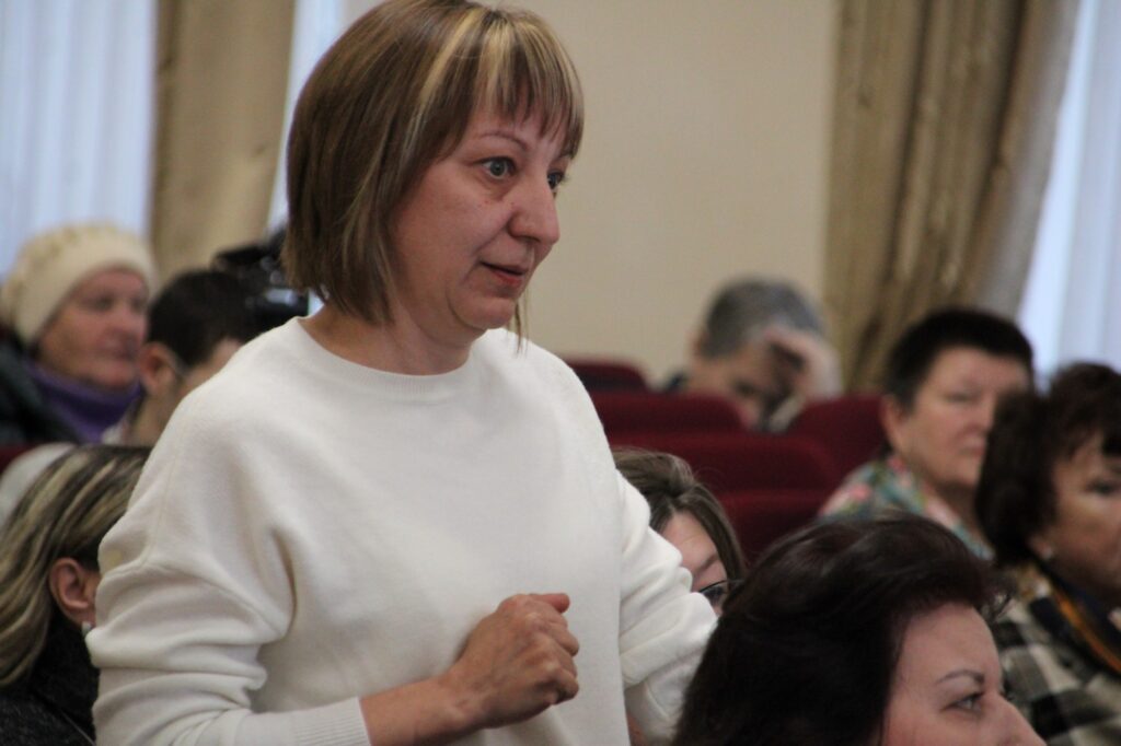Перед собравшимися выступил главный врач больницы им. М.И. Шевчук Айрат Махмутов. Одним из вопросов, который задали выступающему, стал ремонт поликлиники №5 и переселение её персонала в здание второй, расположенное на улице Советской. Комсомольчанка уточнила, насколько целесообразно ремонтировать здание, если через год должен открыться детский больничный комплекс.