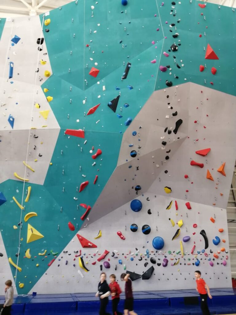 В огромном здании расположились пять спортивных залов, и все из них, кроме тренажёрного, так или иначе функционируют, хотя находятся в разной степени готовности. Полностью готов и доукомплектован оборудованием лишь один, где проходят тренировки батутистов и скалолазов. Благо возведённый строителями скалодром является крупнейшим к востоку от Урала и позволяет проводить соревнования международного уровня, как, впрочем, и батуты высочайшего уровня качества. Для городских батутистов этот зал — основная база тренировки. Сейчас на отделении скалолазания занимается порядка 80 детей, особенно много их вечером и, бывает, утром.