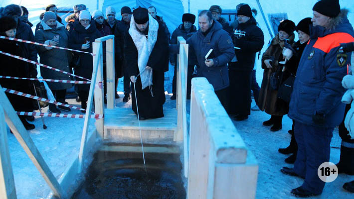 Купания в этом году максимально безопасные. В прорубь традиционно сотрудники МЧС установили деревянный короб. Снизу он закрытый, поэтому, даже если человек неудачно погрузится под воду, его никуда не унесёт. В связи с низкими температурами над порубью соорудили палатку с тепловой пушкой.