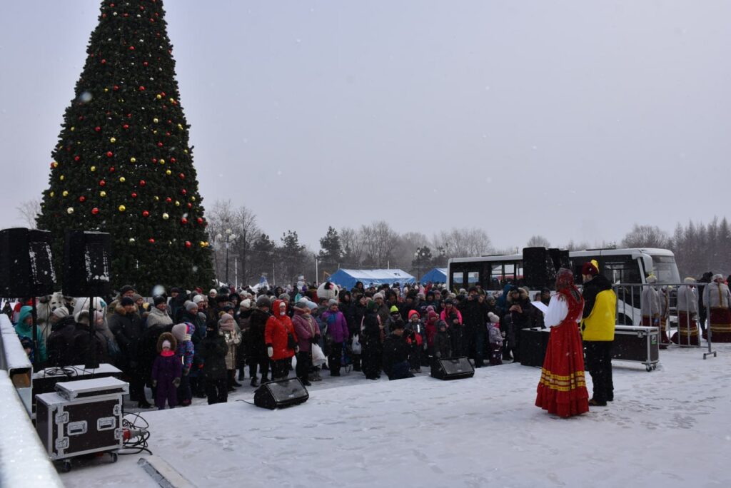 18 февраля удачно выпал на субботу, и с 11 часов обочины у драмтеатра наглухо заставлены личным автотранспортом, а каждый прибывающий автобус выгружает новых граждан с детьми за ручку.
