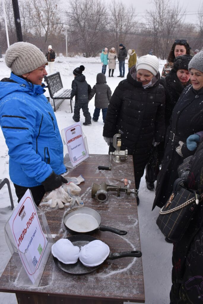 Шуточный «пельменный» аналог кёрлинга действительно позабавил: такого в городе ещё не было. На общественном катке возле театра идёт игра по тем же правилам, что в олимпийском виде спорта. Надо запустить по льду свои фишки, поставить их в центр мишени, а фишки соперника выбить за круг. Но вместо обычных снарядов народ запускает кастрюли с замороженной водой и торчащей поварёшкой.