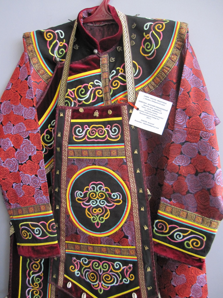 — Детский сарафан сделан из рыбьей кожи, на это идёт, как правило, кета, — говорит Людмила Викторовна Ходжер, мастерица из села Джуен. – Работа над выделкой кожи и шитьём занимает не менее двух месяцев.