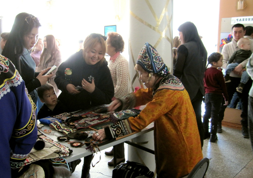 Уже за час до начала представления в фойе Дворца культуры было невозможно протолкнуться, настолько много зрителей пришли познакомиться с героями мифов и сказок нанайского фольклора. Люди толпились вокруг столов выставки декоративно-прикладного искусства мастеров из числа коренных малочисленных народов города Комсомольска-на-Амуре, Амурского и Солнечного районов, активно шла продажа сувенирной продукции: браслетов, амулетов, магнитов, одежды из рыбьей кожи.