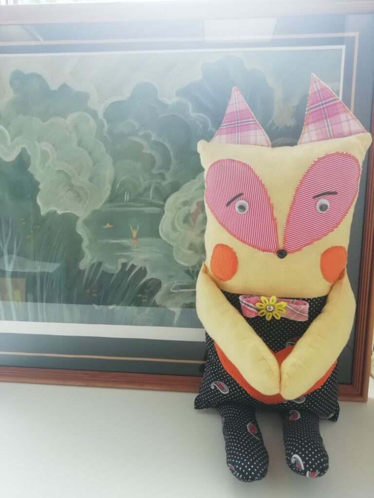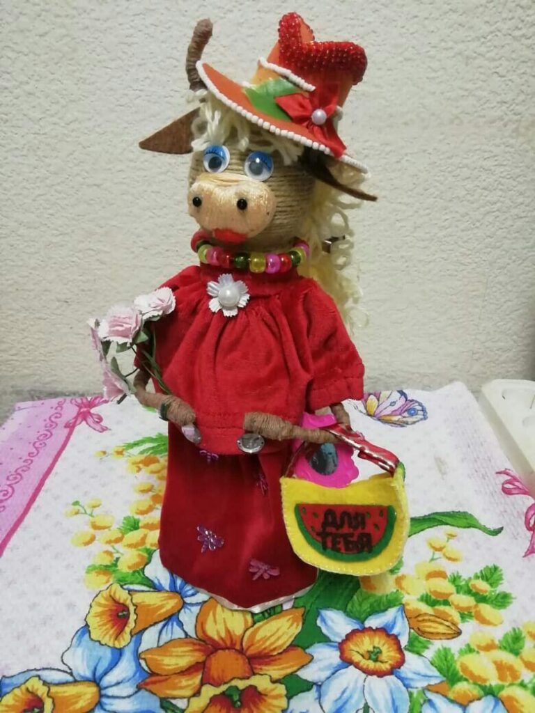 — Идеи приходят сами собой, моментально. За день могу нарисовать два-три рисунка, если работа с тканью, то один за два дня. Там шить не надо, просто клеишь. Большим спросом пользуются мягкие игрушки, подушки, фартуки, различные прихватки. Вот, сделала корову, и её сразу купили.