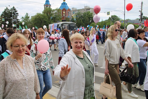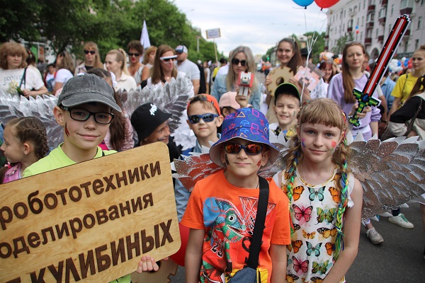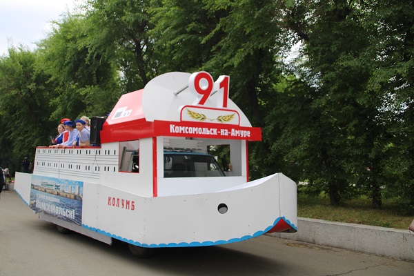 Началось празднование Дня города с традиционного шествия. Его возглавили автомобили, декорированные под пароходы «Колумб» и «Коминтерн». Следом за ними от площади Ленина до драматического театра проследовала колонна, в которой прошли представители администрации, культуры и спорта, студенты, работники предприятий и горожане, решившие поздравить таким образом родной Комсомольск.
