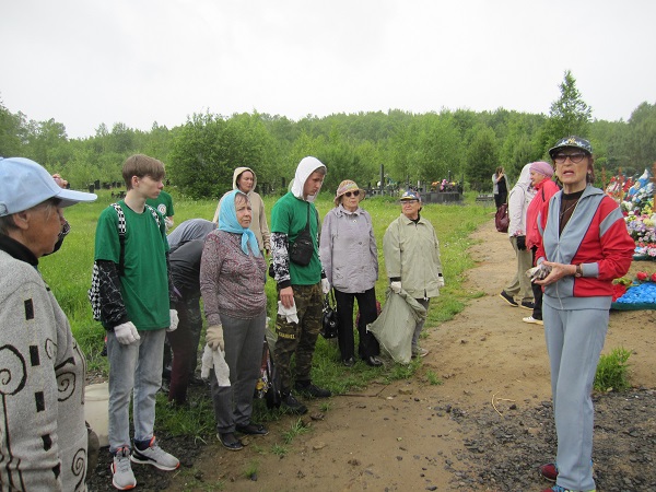 — Такое мероприятие мы проводим ежегодно, — сказала Зоя Андреева, председатель совета ветеранов войны и труда Центрального округа. — Сегодня погода нас подвела, дождь, а так, бывает, и песок подносим к могилам, подсыпаем.