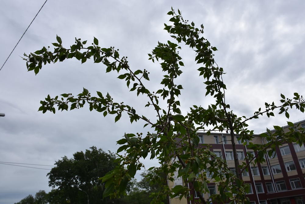 Остальные саженцы успешно перезимовали, потом красиво отцвели и теперь облеплены мелкими зелёными яблочками размером с горошину. Деревья посажены точно того вида, что был раньше – яблоня сибирская (она же ягодная).