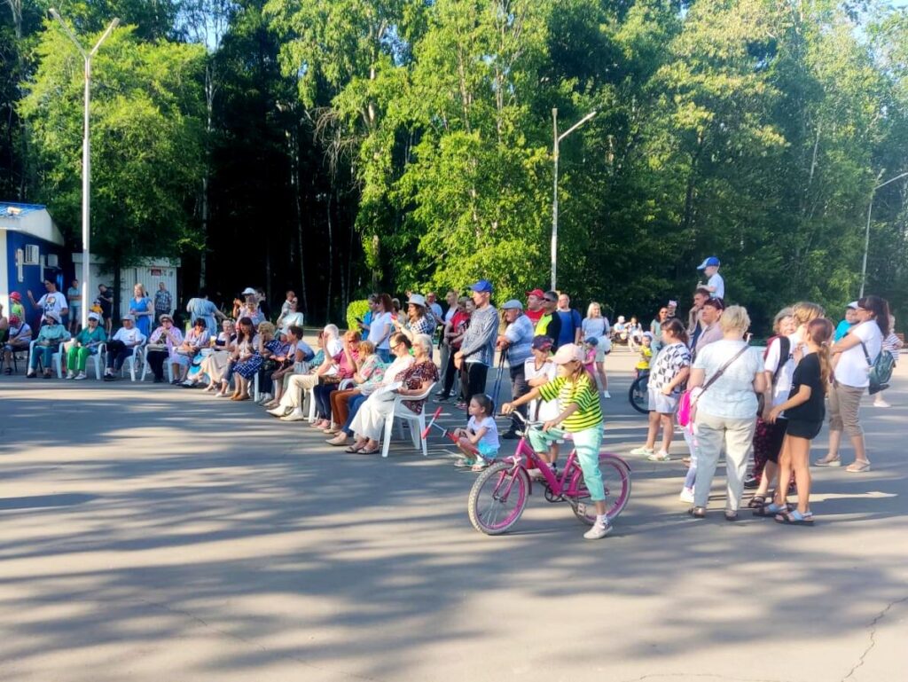 В воскресный вечер прозвучала и лиричная композиция «Синий платочек». Под неё собравшиеся в парке зрители станцевали вальс.