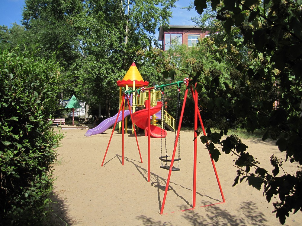 — В 2019 году мы начали прорабатывать вопросы, кто занимается благоустройством дворов, где взять оборудование, поездили по городу, посмотрели. Нашли подрядчика, хабаровскую компанию, заключили договор. Поставили горку, на радость детям засыпали площадку песком, и так она простояла два года. В этом году должны были сделать специальную резиновую плитку, и деньги есть, у нас вообще денег много на дому. Мы посетили другие детские площадки с подобным покрытием, поговорили с ребятами из ТОСов, и они нам сказали, что такая плитка со временем начинает играть, подниматься местами; и вторая  проблема – детская площадка маленькая — 200 м2, и никто не хочет браться за такой объём работы. Вокруг деревья, кусты, техникой не заедешь, вручную никто делать не будет, и вообще главная проблема — маленький объём.