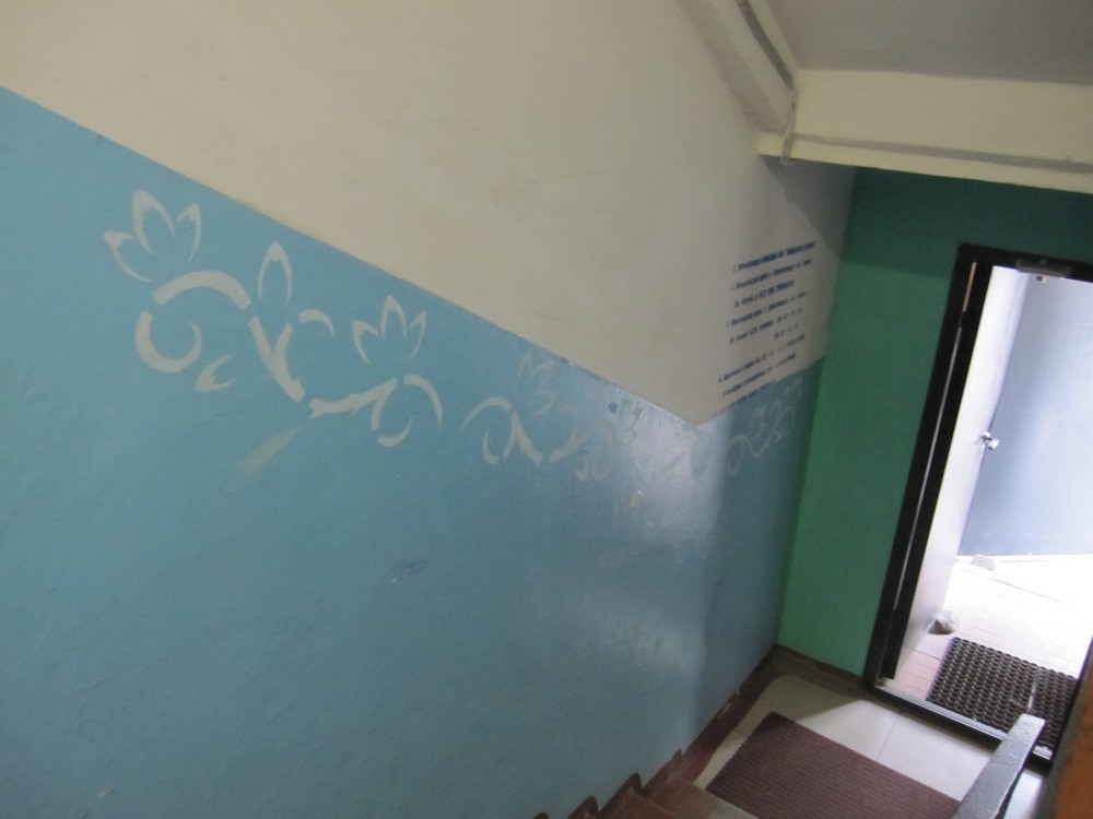 Мы прошлись по подъездам. Старые деревянные двери заменены на железные,  расписанные цветами стены, при входе лежат коврики. На подоконниках цветы в горшках. Чистота и уют.