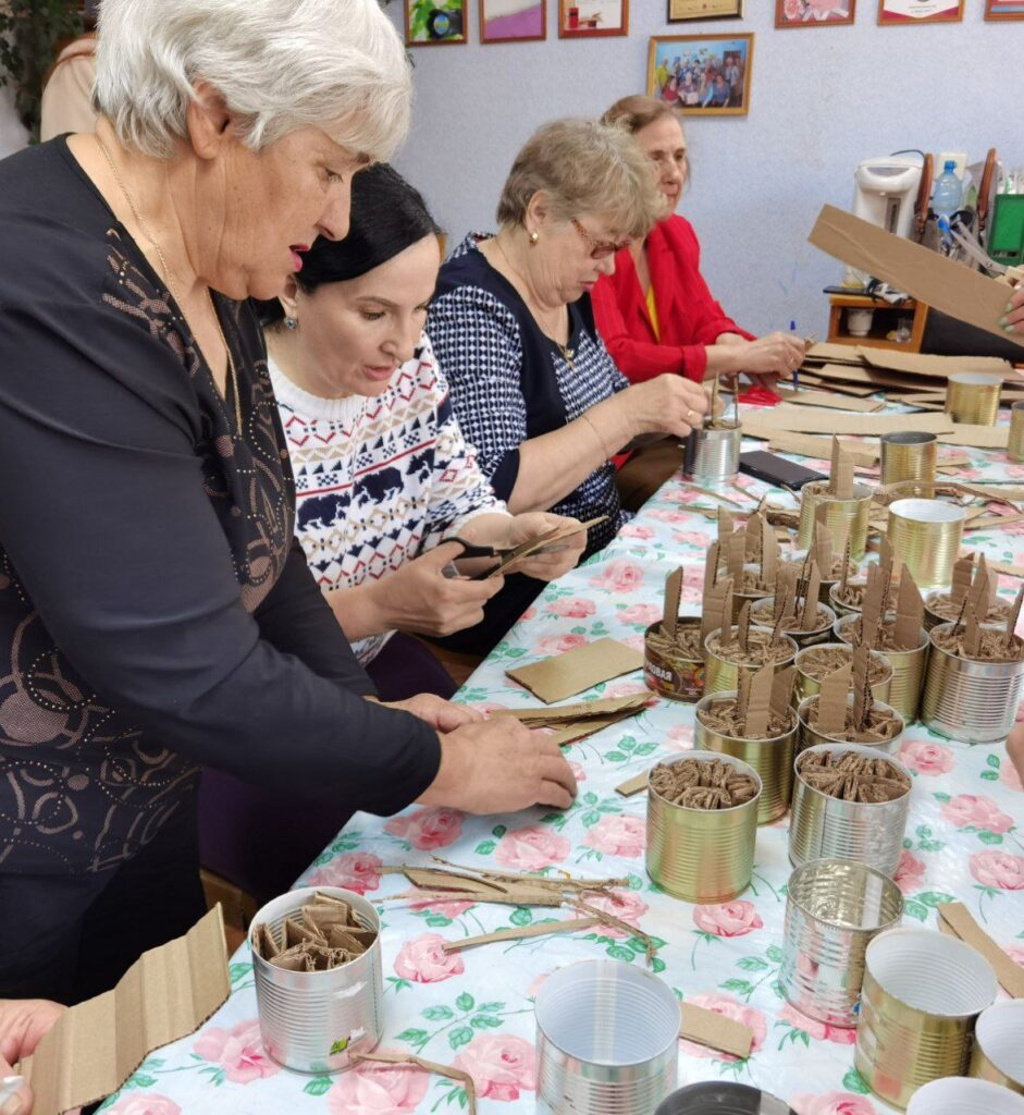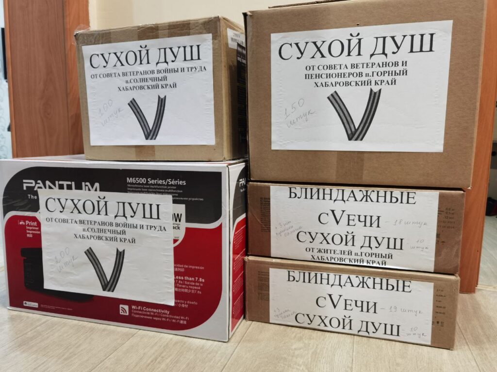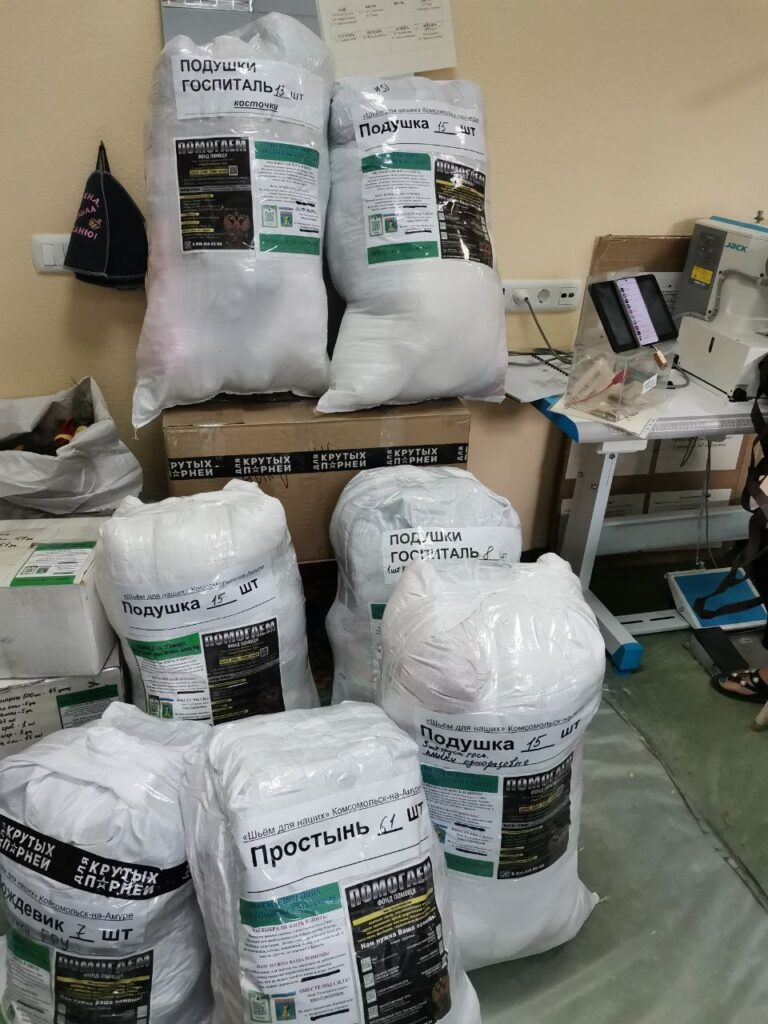 Часть единомышленников организовалась в группу «Шьём для наших. Комсомольск-на-Амуре» и взяла на себя снабжение земляков балаклавами, футболками и толстовками, снудами, пятиточечниками и плащ-палатками, шерстяными носками, госпитальным бельём и подушками, тактическими носилками. Группа «Сvечной zаводик Комсомольск» делает блиндажные (окопные) свечи. Ещё одна называется «Сухой армейский душ» и производит, собственно, сухие души. Есть несколько мастерских по плетению маскировочных сетей. И сеть цветочных магазинов «Азалия», которая тоже ведёт гуманитарный сбор в режиме нон-стоп. Местные предприниматели Дмитрий Власюк и Александр Любицкий (ООО Электромонтаж) вызвались производить сапёрные кошки и щупы, а также печки-буржуйки. Подключились детсадовцы, школьники и студенты, пенсионеры и ветераны. Кроме Комсомольска, Хабаровска и Эльбана, где тоже действуют представители фонда «Помогаем», в дело вступили Хурба, Снежный, Горный, Солнечный, Найхин, Дада, Нерген, Маяк.
