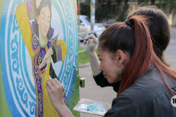 На проспекте Интернациональном, 49 стоит технологический шкаф. И сейчас местная художница Виктория Пассар занимается его украшением: рисует там нанайскую девушку...