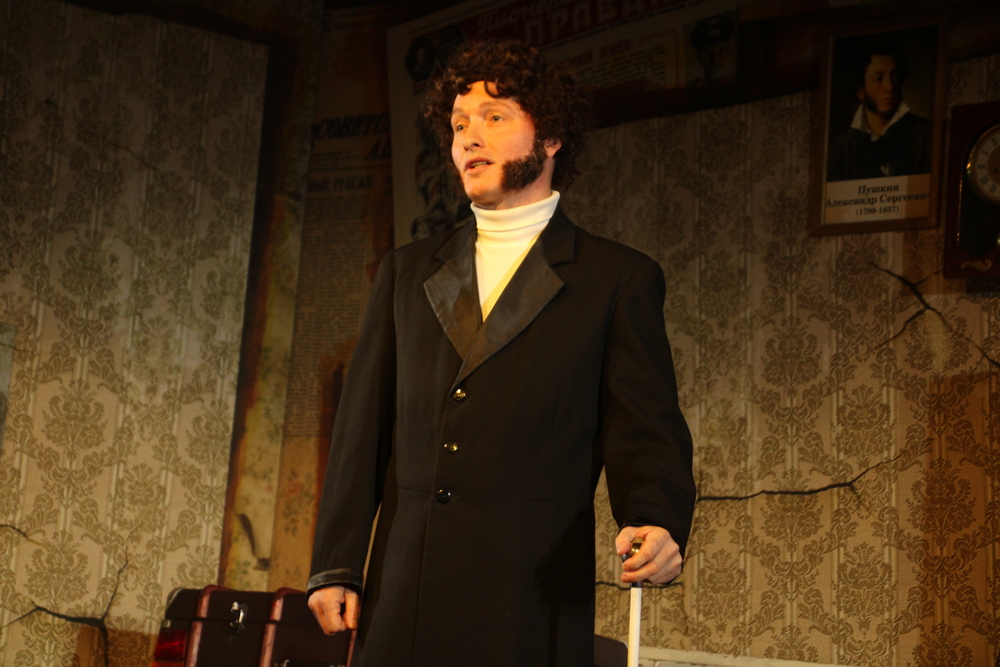 Константин Демидов отказался от формата моноспектакля, который предлагает пьеса. У него на сцене появляются все персонажи, о которых рассказывает главный герой, в том числе и сам Александр Сергеевич Пушкин, роль которого исполнил Дмитрий Стертюков. Он поначалу будто преследует Михаила, становясь для него ещё более ненавистным.