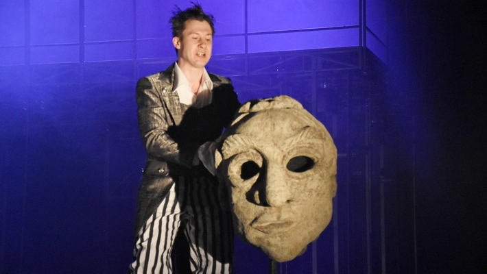 – Работать в маске было непросто, — отметил Игорь Веслополов, сыгравший Сальери. – В ней было хуже слышно, и глаза не видели, что происходит внизу. Поначалу спотыкался о стулья, но потом научился взаимодействовать с этой маской и контролировать её.