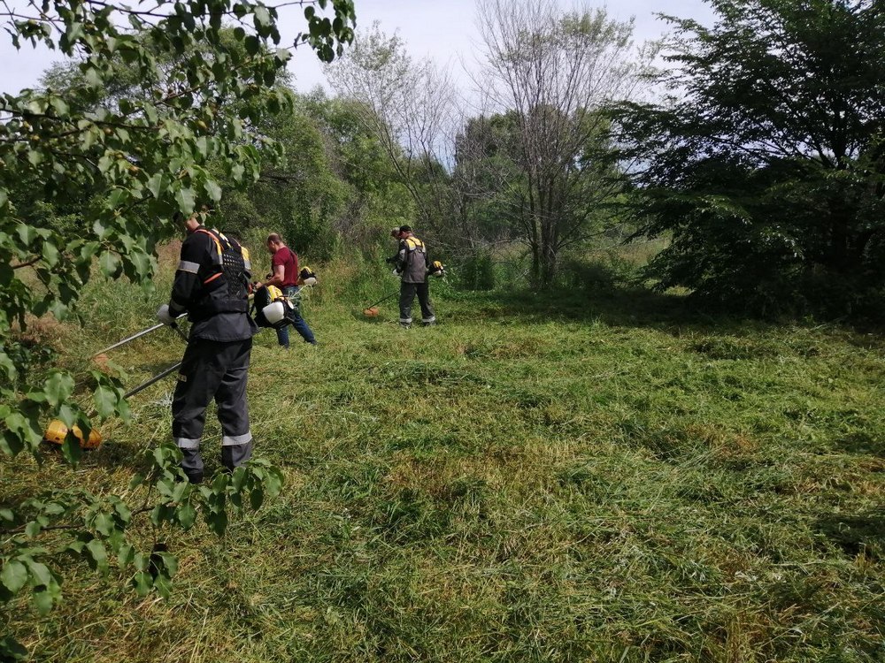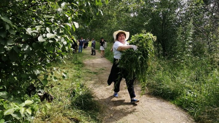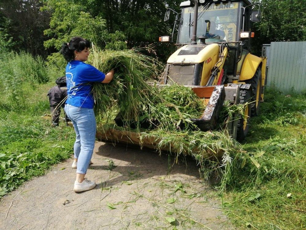 Была поставлена основная задача – собирать траву, которую будут скашивать, и грузить в погрузчики, обрезать сухие ветви деревьев. Мешки только для мусора.