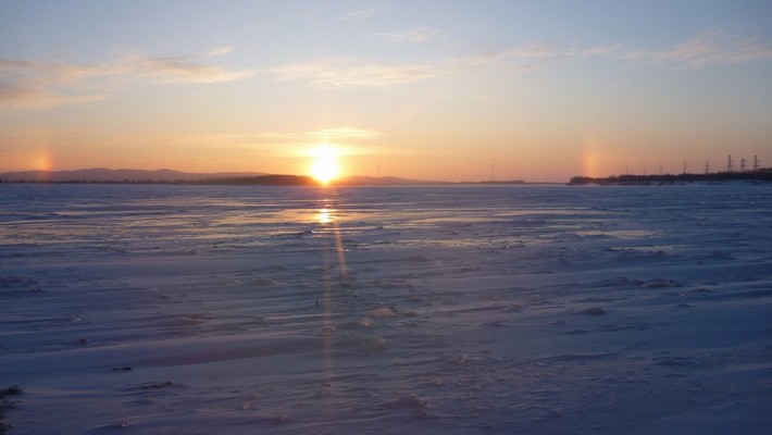 20 декабря с Эдуардом Барсуковым мы пересекали широкие поля за посёлком Новый Мир. Дорога накатана, и автомобиль легко маневрирует среди высокой желтоватой травы. Видны следы различных животных. Это бегали зайцы и, вероятно, лисы с енотовидными собаками. А сколько здесь появилось высоковольтных вышек! Как мощно шагает по Хабаровскому краю современный энергопрогресс! Преобразилась и железная дорога. Идёт полная электрификация. А для сохранения тишины посёлок ограждается защитными экранами. Здорово!