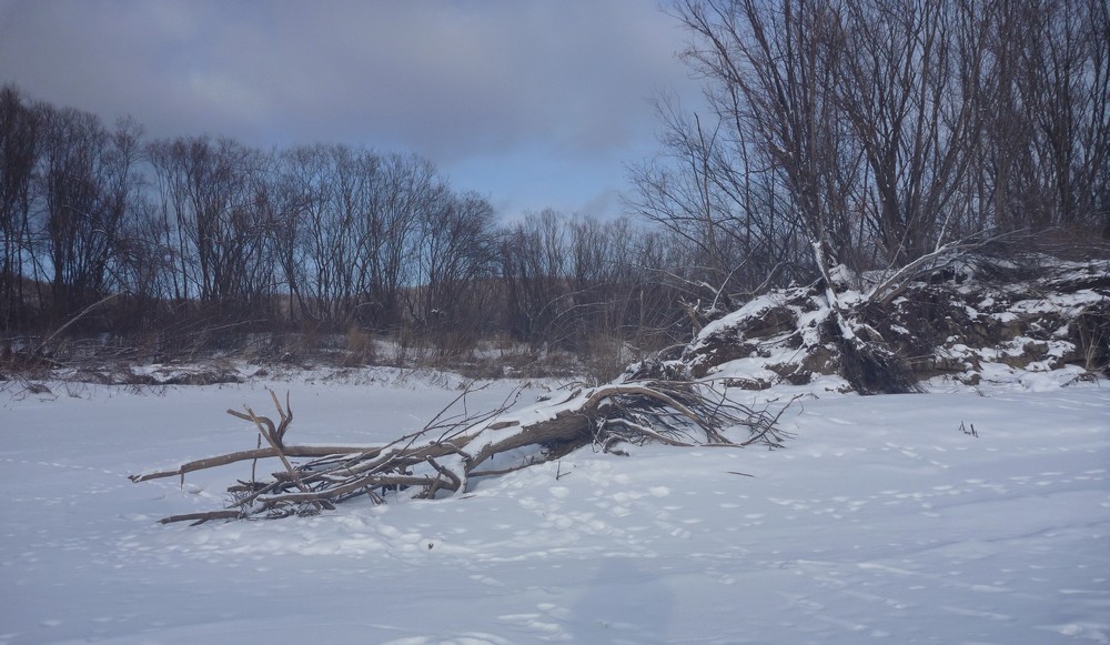 Непросто найти за косой правильные лунки: здесь очень много подлёдной шуги, течение практически по всей её длине вдавливает ледоходные массы под берег. Вот и я оставляю свежую лунку и перехожу глубже. Лёд в этом месте порядка 35 см и практически без шуги. Обрадованно опускаю одну из своих лучших приманок с двумя мухо-мальками. Хоп! Ух! Но это не рыба! Это зацеп… Я предупреждаю рыболовов, что в этих местах сначала следует проверить дно блесной с разгибаемыми «усами»-крючками. А после начать ловлю. Сам не подумал, что даже на глубине лежат поваленные деревья. Похоже, что в своё время в этом месте был берег, а после его обрушило течением. Снасть так и осталась в «музее» приманок амурского Поди. Между тем знакомый щукарь на глубине 3 м выудил трёх щучек. Довольный уловом и отличной погодой рыболов отправился домой…