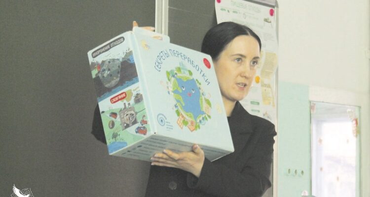 После теории приступили к практике. Сотрудница заповедника Юлия Стародубова провела презентацию интерактивного урока «Секреты переработки» с использованием тематического набора-чемодана. Среди содержимого – колбочки с фракциями измельчённого вторсырья, образцы реальных вещей, которые переработаны из бумаги, пластика и так далее, игровые урны для раздельного сбора, другой наглядный реквизит.