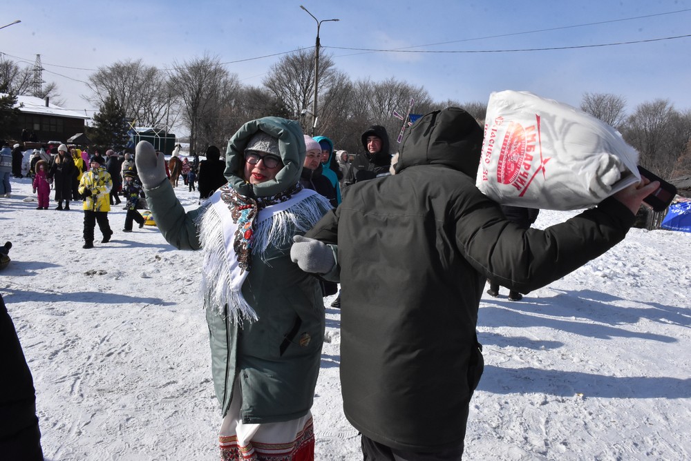 Праздник с блинами и скоморохами отметили и на ДК «Алмаз». Здесь же гостей угостили солдатской кашей.