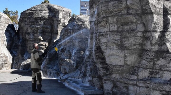 Работы на объекте идут полным ходом. На Мемориальном комплексе во время субботника в минувший четверг помыли и очистили от мха памятные каменные глыбы, символизирующие собирательные образы советских воинов.