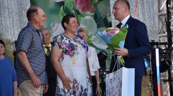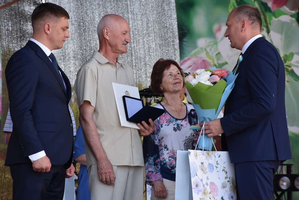 В День города на сцене чествовали молодожёнов и семьи, прожившие в браке 50 лет и более.