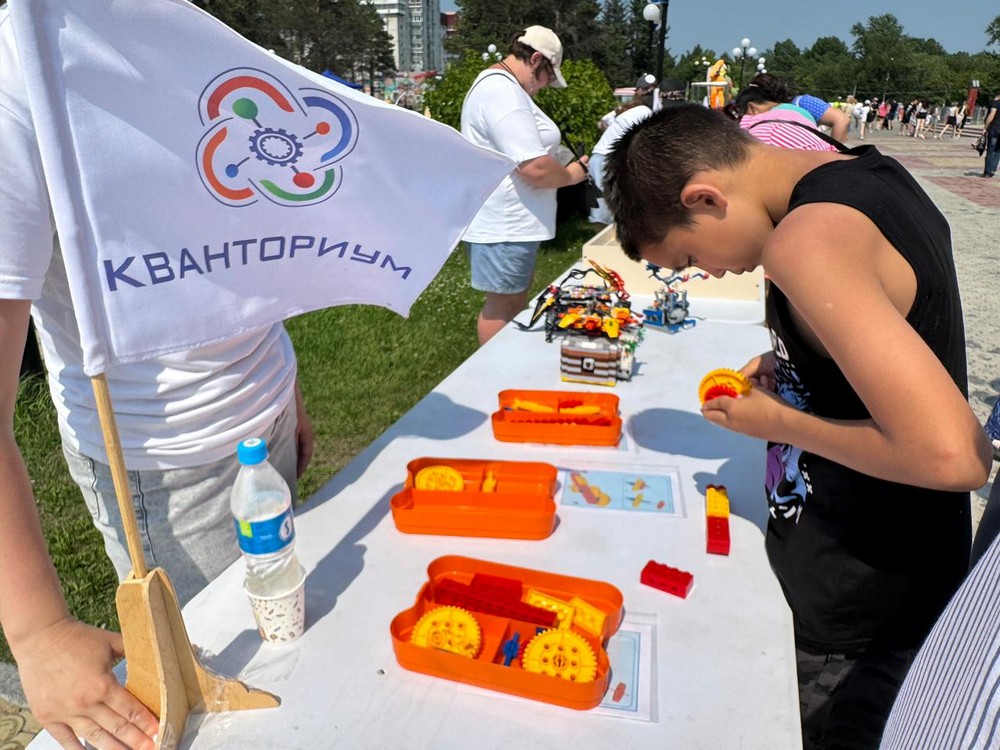 Площадка от технопарка «Кванториум» тоже работала весь день. Здесь можно было собрать действующую модель робота, выполнить задания по логике, попробовать песочное моделирование и даже сделать собственную открытку ко Дню молодёжи.
