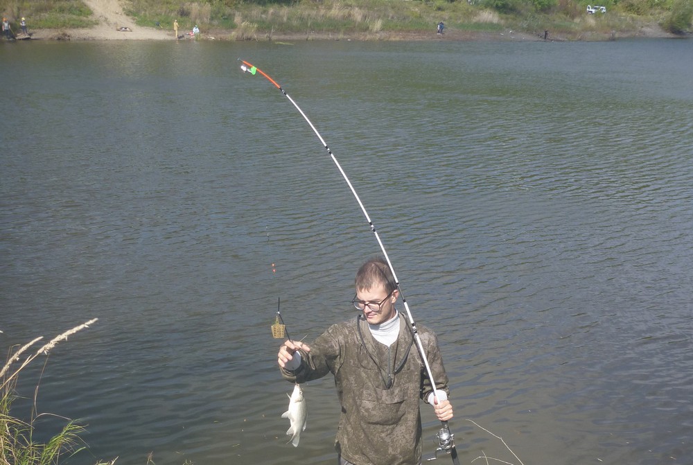 Мы щедро прикармливаем рыбу, настраиваем удочки с донками и начинаем ловлю. Свои кормушки-пружинки я наполнил чёрным ароматным хлебом с кедровыми орешками и чесноком. Какое чудесное угощение! Рядом разместил крючки с червячками, и дело пошло! Карась, ещё карась, ещё! Эдуард оснастился по-своему. У него в кормушке специальная магазинная смесь, а рядом четыре крючка с ароматными плавающими шариками. На жала крючков добавил червячков. Караси почему-то не реагировали, а вот молодой сазанчик с удовольствием ухватился за приманку. Удилище согнулось в дугу, рыба делала крутые виражи, но успешно была доставлена к берегу.