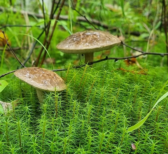 А на лесной тропе торчат шляпки маслят! Вот и прибавка к ужину!